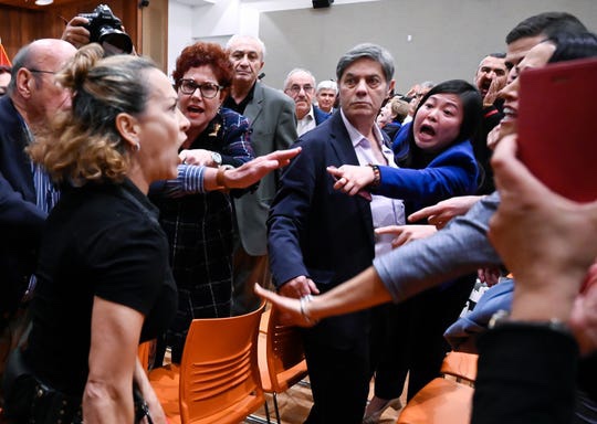 Scuffles broke out as Rep. Adam B. Schiff (D-Burbank), a co-sponsor of a resolution on the issue, spoke in the auditorium at the Glendale Central Library, the Los Angeles Times reports.