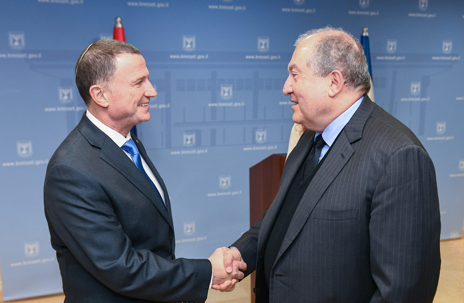 The Armenian President and his spouse were hosted by Knesset Speaker Yuli Edelstein and his wife.