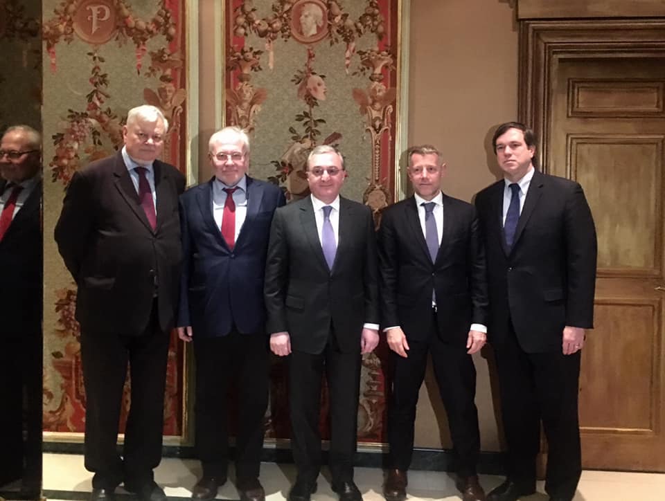 Armenian Foreign Minister Zohrab Mnatsakanyan, today in Geneva, met with OSCE Minsk Group Co-Chairs Igor Popov (Russia), Stéphane Visconti (France), Andrew Schofer (US) and Andrzej Kasprzyk, Personal Representative of the OSCE Chairman-in-Office. Foreign Ministry Spokesperson Anna Naghdalyan gave no additional details on the meeting in her Facebook post.