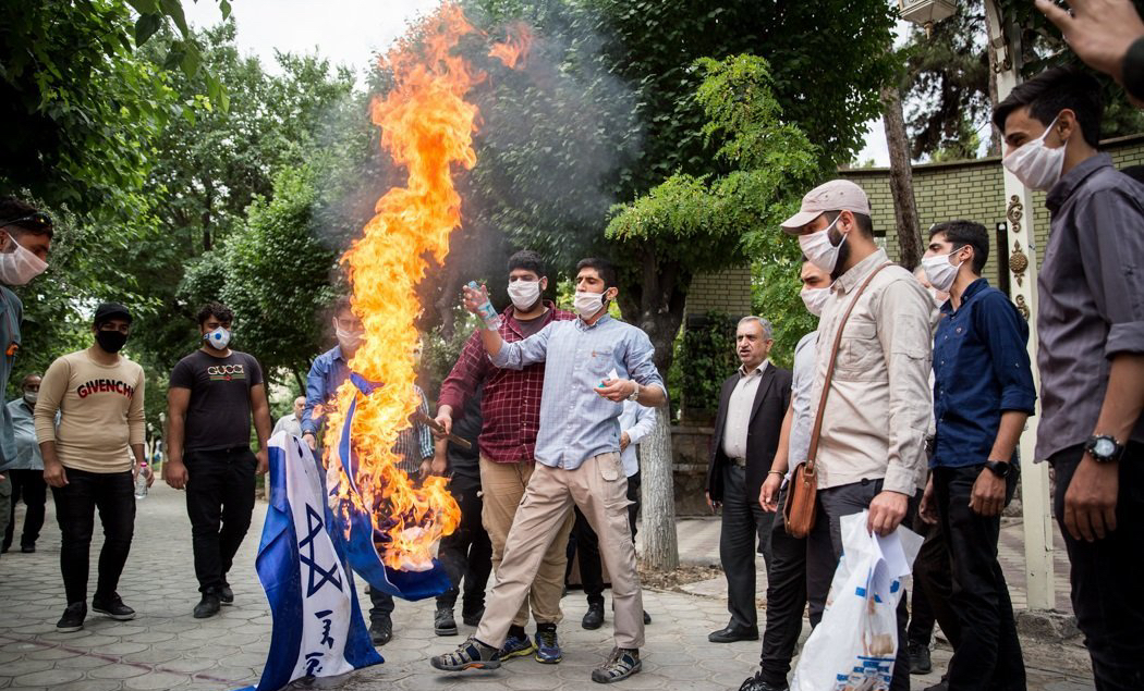 The protesters held signs warning about the consequences of the decision, screamed “Death to Israel, Death to the United States and Death to Britain” and burned the Flag of Israel.