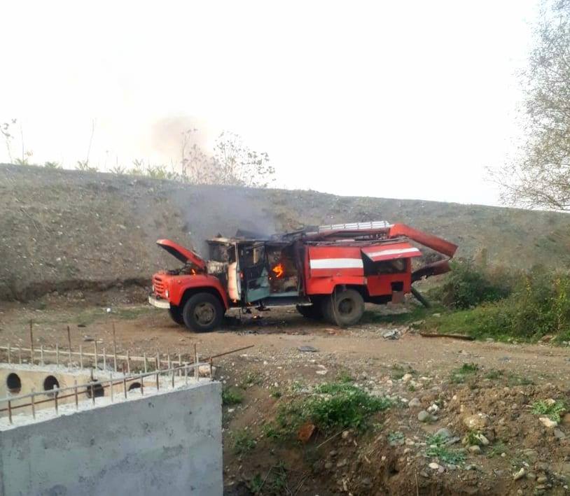 Today, Azerbaijan deliberately targeted a fire engine, transporting drinking water from the town of Askeran to civilians in neighboring communities. No casualties reported. Once again Azerbaijan intentionally targets people with humanitarian functions, per the Artsakh Human Rights Ombudsman.