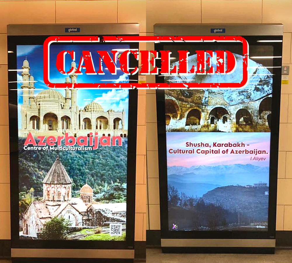 “After the formal complaints put forward by the Embassy of Armenia as well as the UK-Armenian community organizations, the offensive posters at the London Underground, displaying Armenian historical and cultural heritage as Azerbaijani, have now been removed from the Transport for London (TfL) network.”