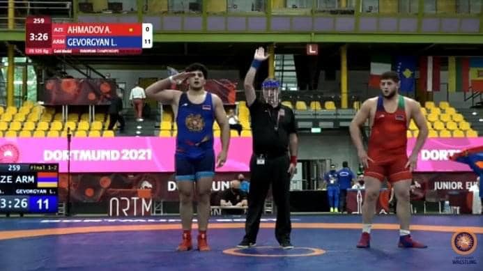 Armenian wrestler Lyova Gevorgyan (125 kg) defeated Azerbaijan’s Aydin Akhmadov 11-0 in the last round to win gold at the U21 European Freestyle Wrestling Championship in Dortmund, Germany, informs the Armenian Wrestling Federation.