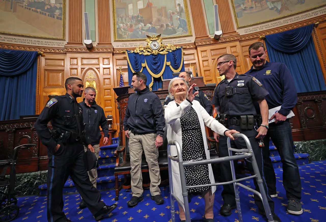 Vartanian received a Boston police escort from her home at the Armenian Nursing & Rehabilitation Center in Jamaica Plain to the State House to mark the 109th Anniversary Commemoration of the Armenian Genocide. Once inside the packed chamber, Vartanian was recognized for her “contributions to the Armenian-American community” in Massachusetts.”