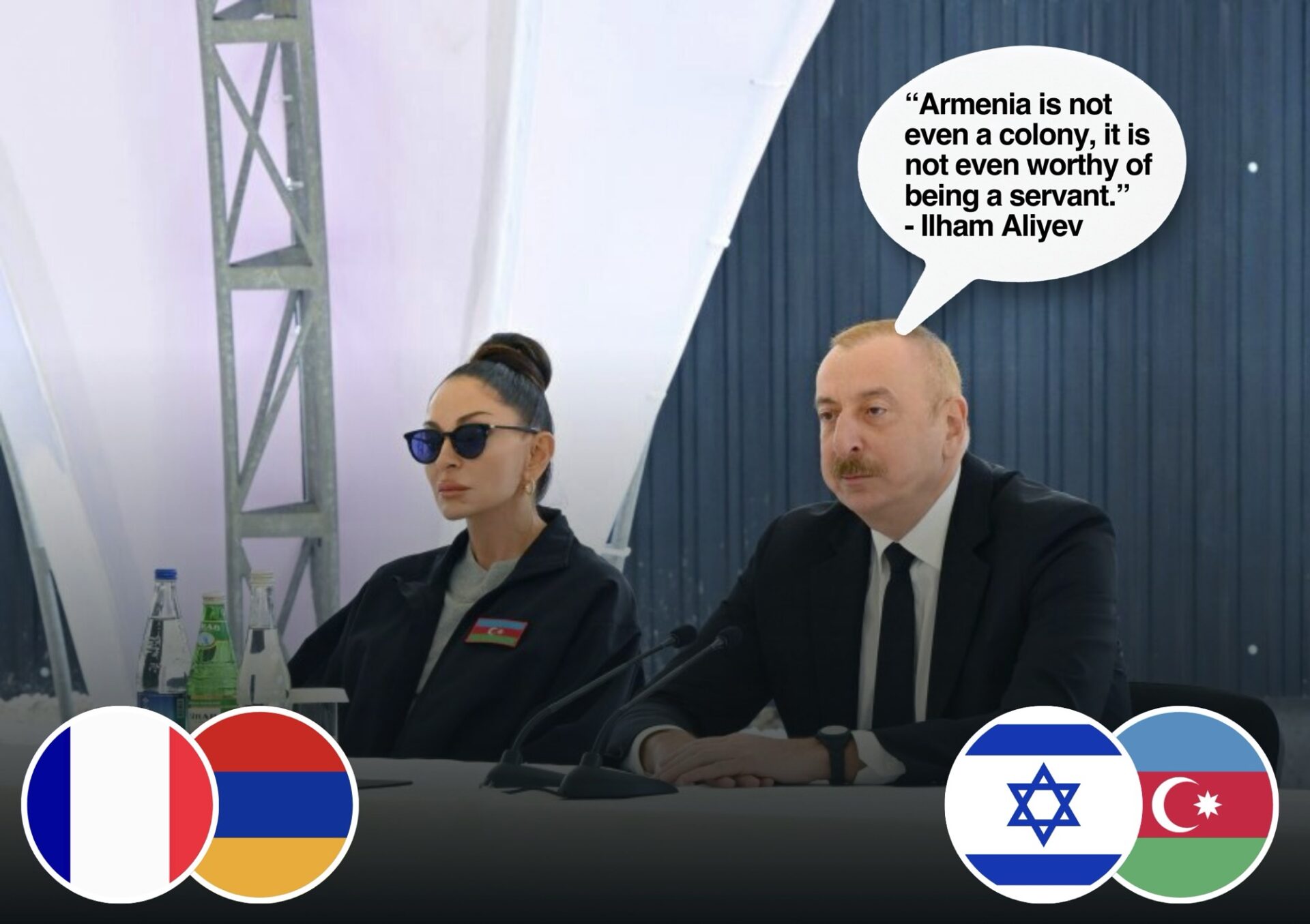 Aliyev said, “Our policy is based on international law and justice. If we see revengeful forces raising their head again in Armenia, if France gives deadly weapons to Armenia, and if we see that these weapons reach a critical level, then let no one have any hard feelings,’ while in occupied Shushi, Artsakh.