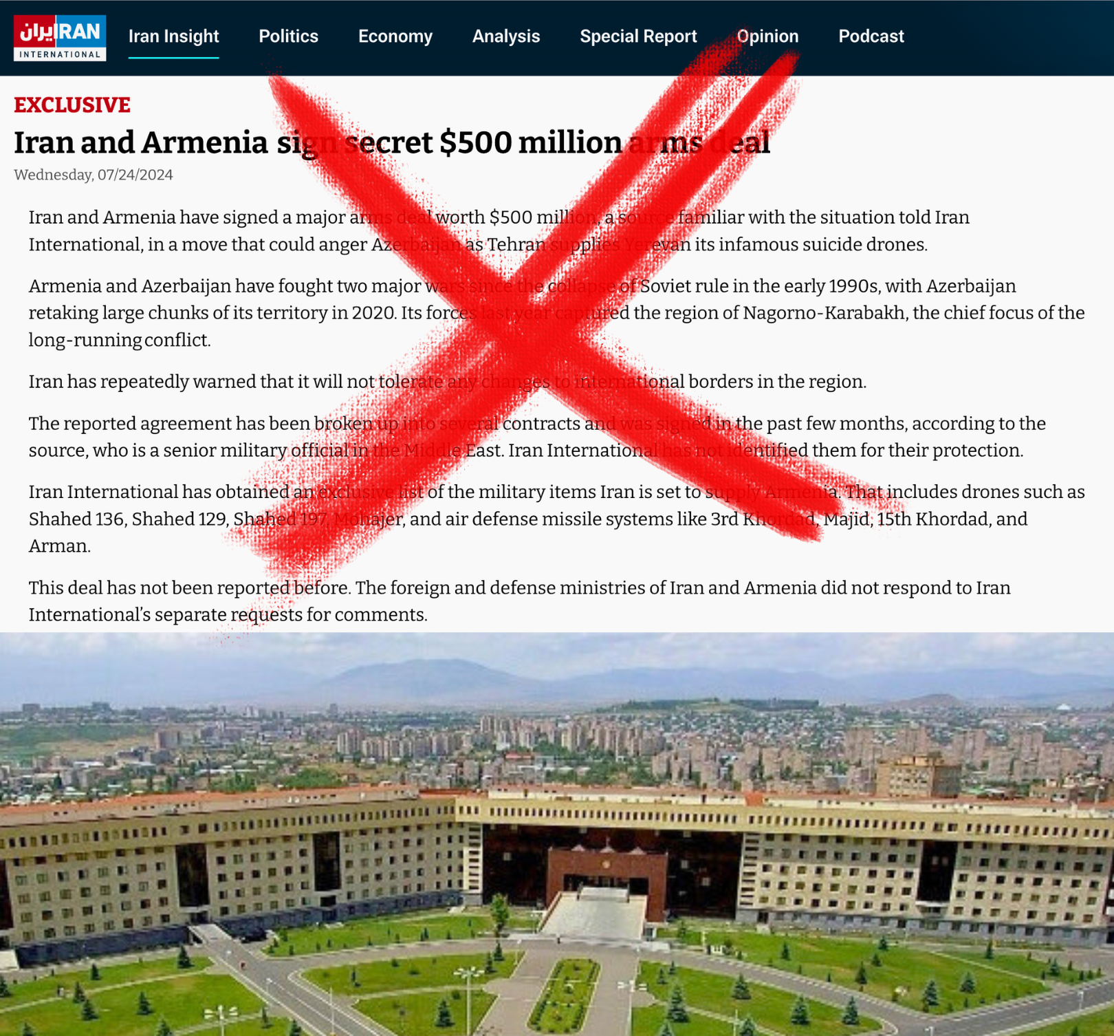 The MoD’s comments come after Iran International website published an article in which it claimed that Iran and Armenia had signed a secret major arms deal worth $500 million.