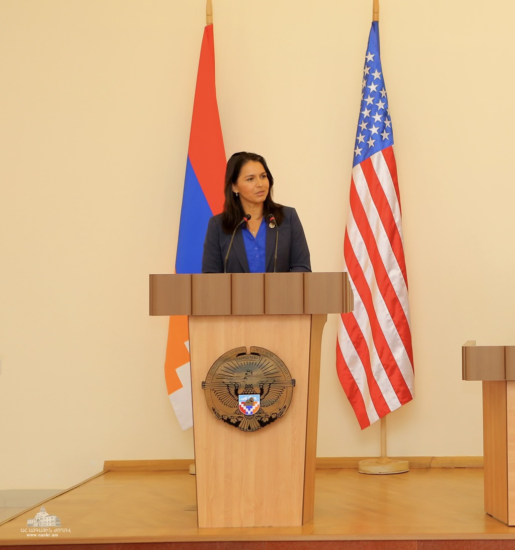 In 2017, while serving as a Congresswoman, Gabbard was part of a team of U.S. lawmakers that visited the Republic of Armenia and Artsakh, facing criticism from Azerbaijan for her support of the region. She has publicly accused Turkey of inciting and encouraging the 2020 Artsakh (Nagorno-Karabakh) war between Armenia and Azerbaijan. Gabbard co-signed a letter to Secretary of State Mike Pompeo expressing concern over Azerbaijan’s renewed aggression against Artsakh and a potential conflict with Armenia, stating, “The United States must urge Azerbaijan to immediately end their attacks, and Turkey to cease its involvement both directly through the use of its armed forces, and indirectly by sending Al-Qaeda associated proxies to wipe out Nagorno-Karabakh’s Armenian population “a tactic Turkey used against Syrian Kurds.”