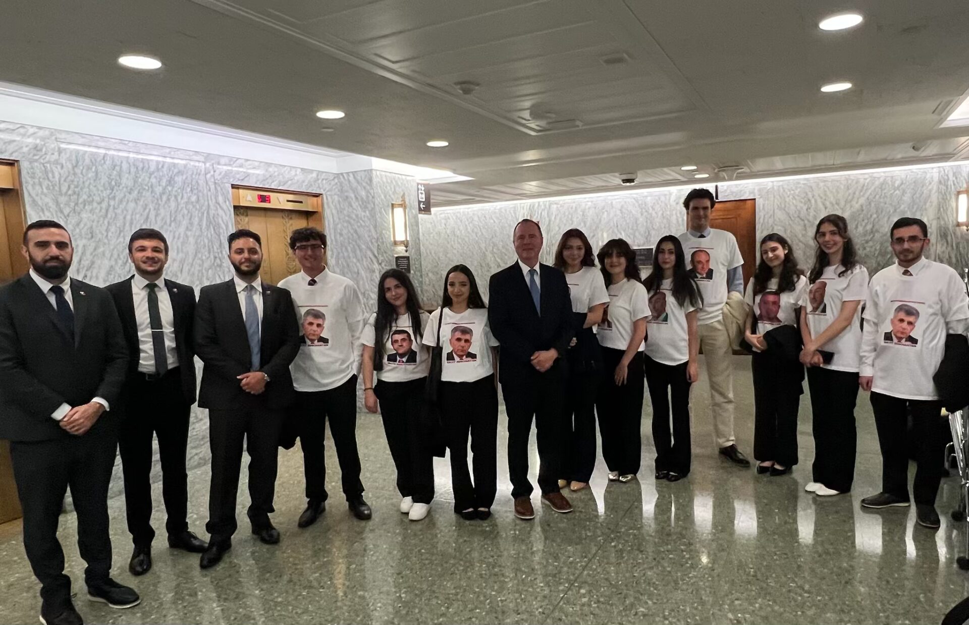 Today in Washington, DC, the ANCA’s Leo Sarkissian internship team met with U.S. Senator Adam Schiff to advocate for the immediate release of Armenian hostages and political prisoners held illegally by Azerbaijan.