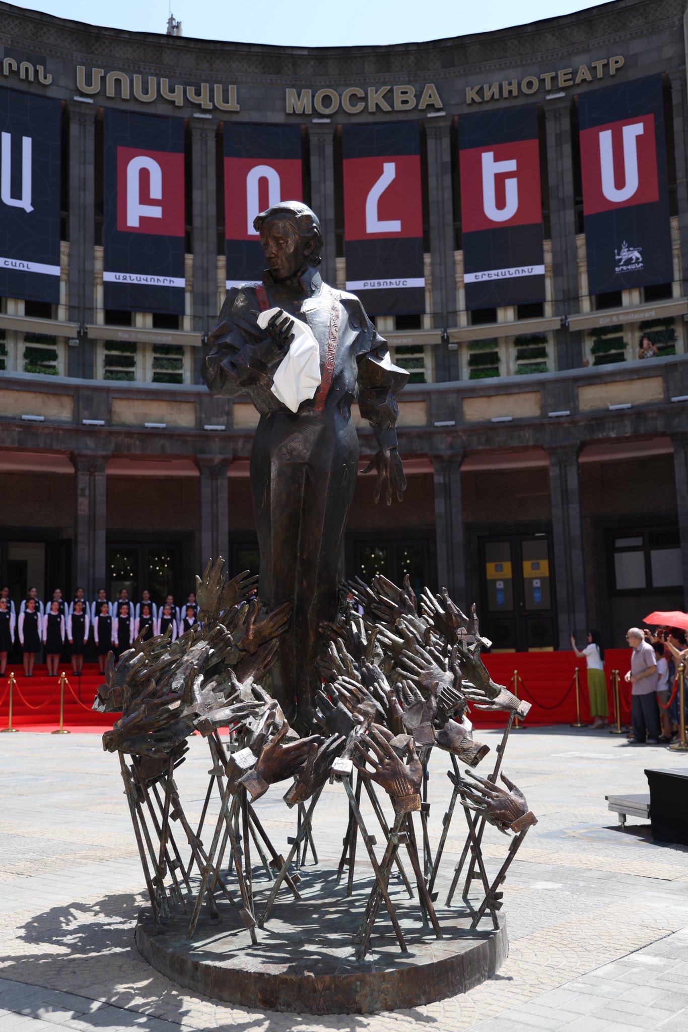 The sculpture was created by artist Davit Minasyan, who won an international design competition launched earlier this year by the Yerevan Municipality in collaboration with the Aznavour Foundation. The contest attracted over 60 applicants and more than 100 miniature models from artists worldwide. Minasyan’s winning design was cast in Gyumri and installed on July 16, two days ahead of the unveiling.