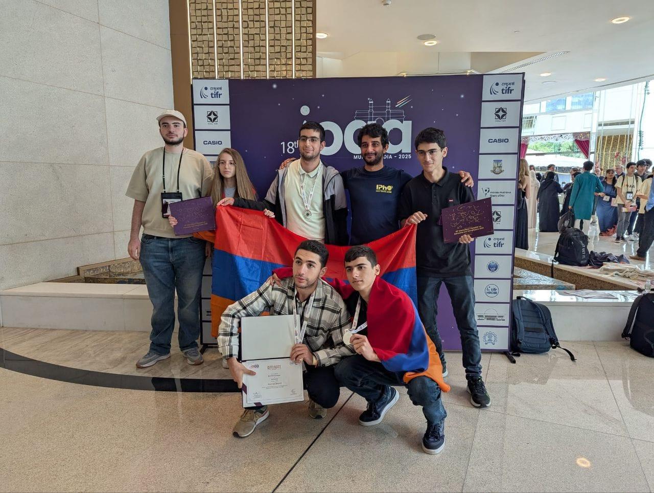 The team included five students from the A. Shahinyan Specialized Physics and Mathematics School: 12th graders Narek Galstyan, Emil Musheghyan, Gor Hasratyan, Vahe Mkrtchyan, and 11th grader Natali Margaryan. They were led by Hrant Topchyan of the Yerevan Physics Institute and Artashes Mkrtchyan of the A. Shahinyan School.