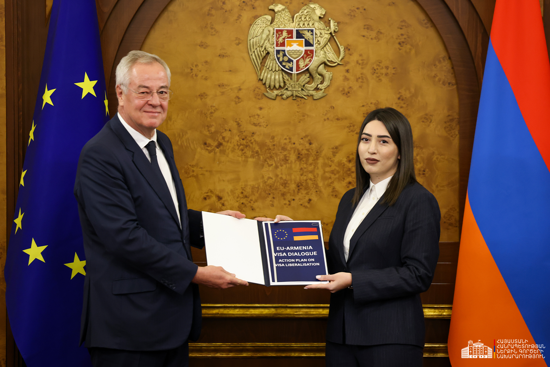 In a new phase for Armenia’s European integration, the European Commission has officially presented the EU–Armenia Visa Liberalization Action Plan to the Armenian government. The handover ceremony, held on November 5 in Yerevan, brought together senior Armenian and EU officials, including Deputy Prime Minister Mher Grigoryan, EU Ambassador to Armenia Vassilis Maragos, and Johannes Luchner, Deputy Director-General for Migration and Home Affairs of the European Commission, who presented the plan to Minister of Internal Affairs Arpine Sargsyan.