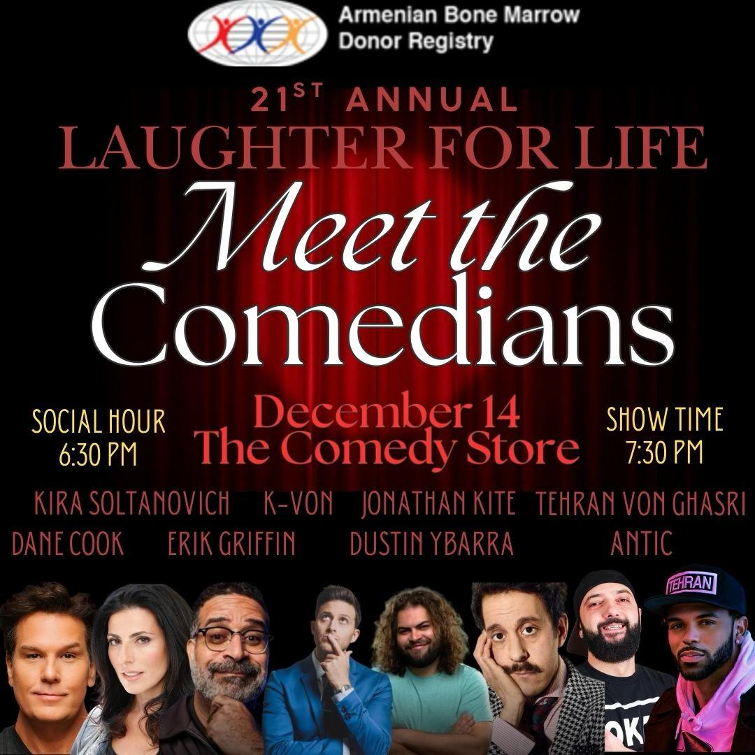 The Armenian Bone Marrow Donor Registry (ABMDR) will host its 21st Annual “Laughter for Life” Comedy Night this Sunday, December 14, at the world-famous Comedy Store in Hollywood. The annual fundraiser brings together prominent comedians and community members in support of ABMDR’s mission to assist patients battling life-threatening blood-related illnesses.